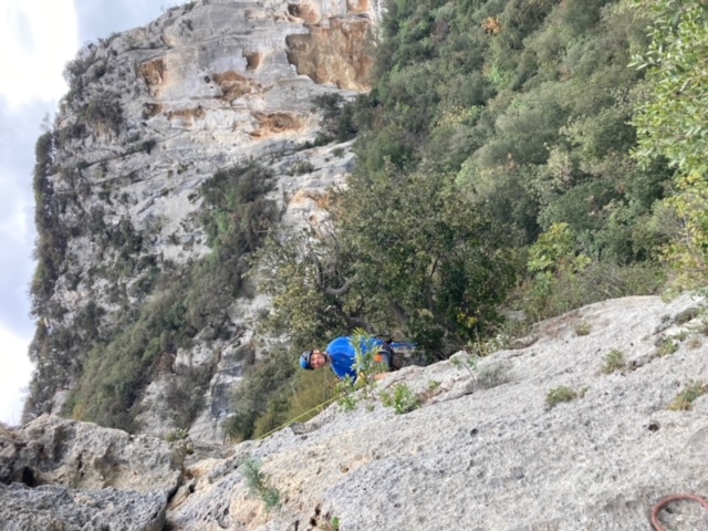 3.den. Jde se do vícedélek! Přesouváme se auty přes Finale Ligure do oblasti Rocca di Perti. Jen zaparkovat naše dvě velká auta není jednoduché a i když v novém průvodci oblasti z roku 2017 jsou uvedeny parkoviště dvě, tak jsou až za novou závorou se zákazem vjezdu a pod dohledem místních obyvatel, kdy na Vás hned volají policii. To neriskujeme a jedeme k sektoru z druhé strany, i když pěší cesta je delší.